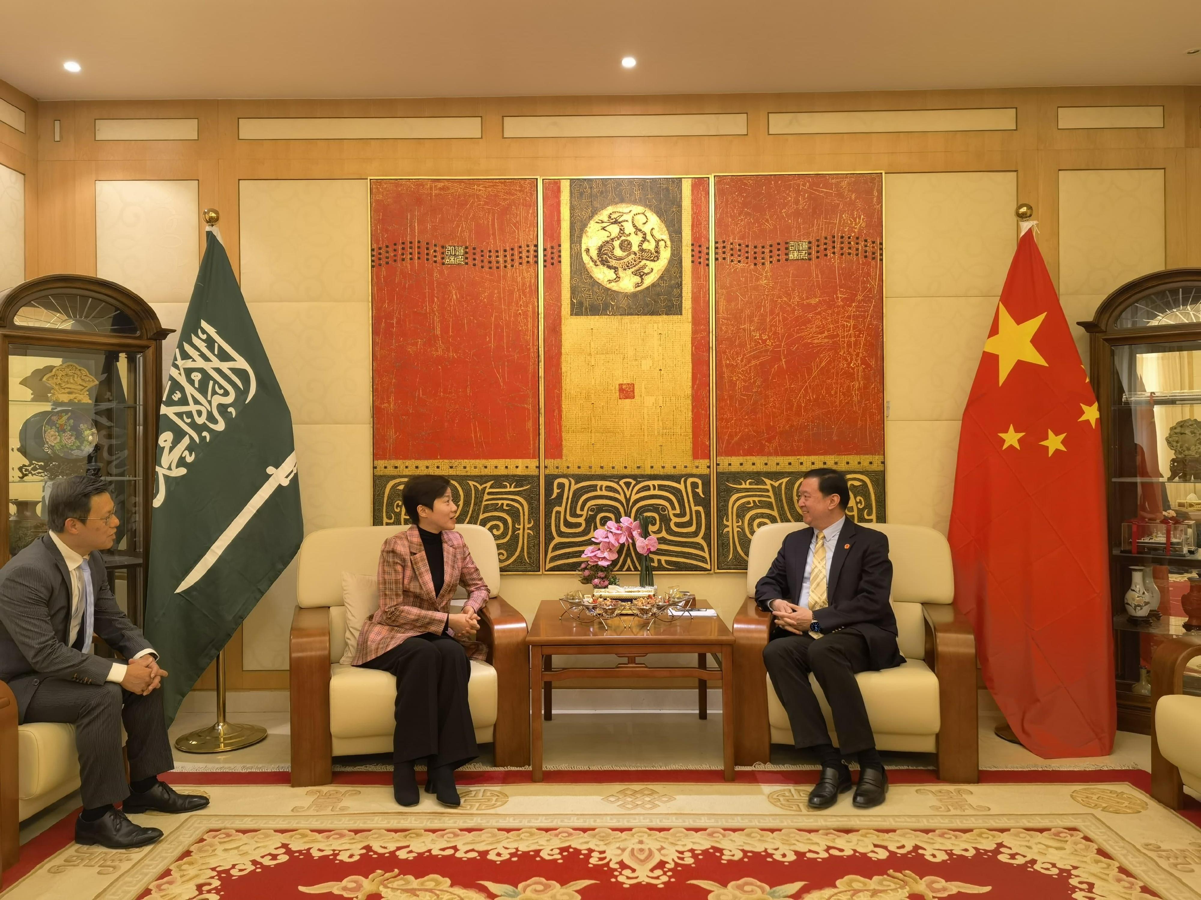 何珮珊亦于十二月七日礼节性拜访中华人民共和国驻沙特阿拉伯王国特命全权大使常华,就香港与沙特阿拉伯的海关合作及便商利贸措施作深度交流。