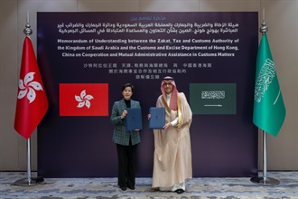另外,许剑亦于十二月四日至五日在沙特阿拉伯利雅得出席为期两天的天课、税务与海关会议。会议以「为未来塑造可持续的生态系统」为主题,汇聚来自各地的海关、税务机关和国际组织的代表以及不同界别的持份者,就海关及商贸发展等多项议题进行交流。