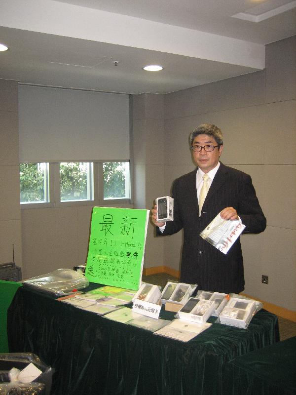 海关版权及商标调查(行动)课署理监督关煜群今日(七月二十三日)在记者会上表示,海关早前发现市面上一些店铺售卖手提电话时,连同载有大量怀疑侵权歌曲的记忆卡,于是展开调查。