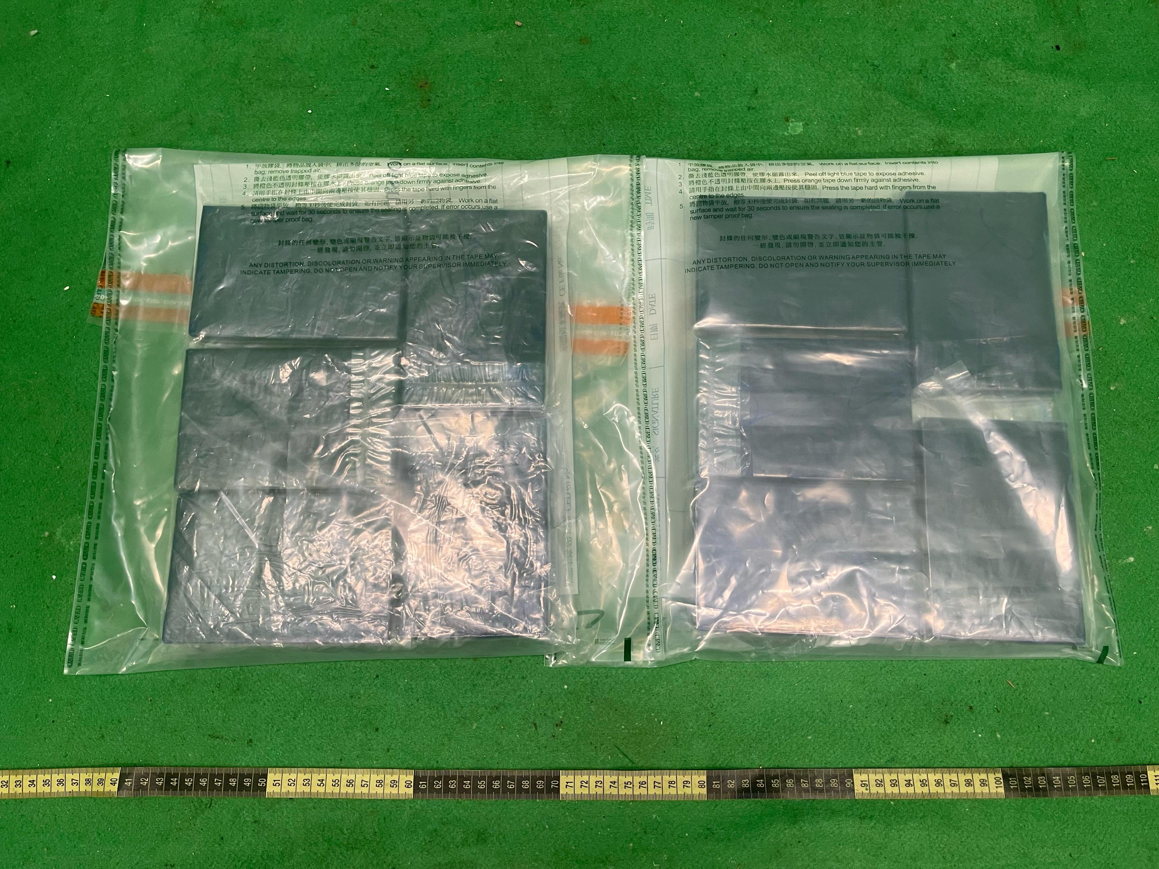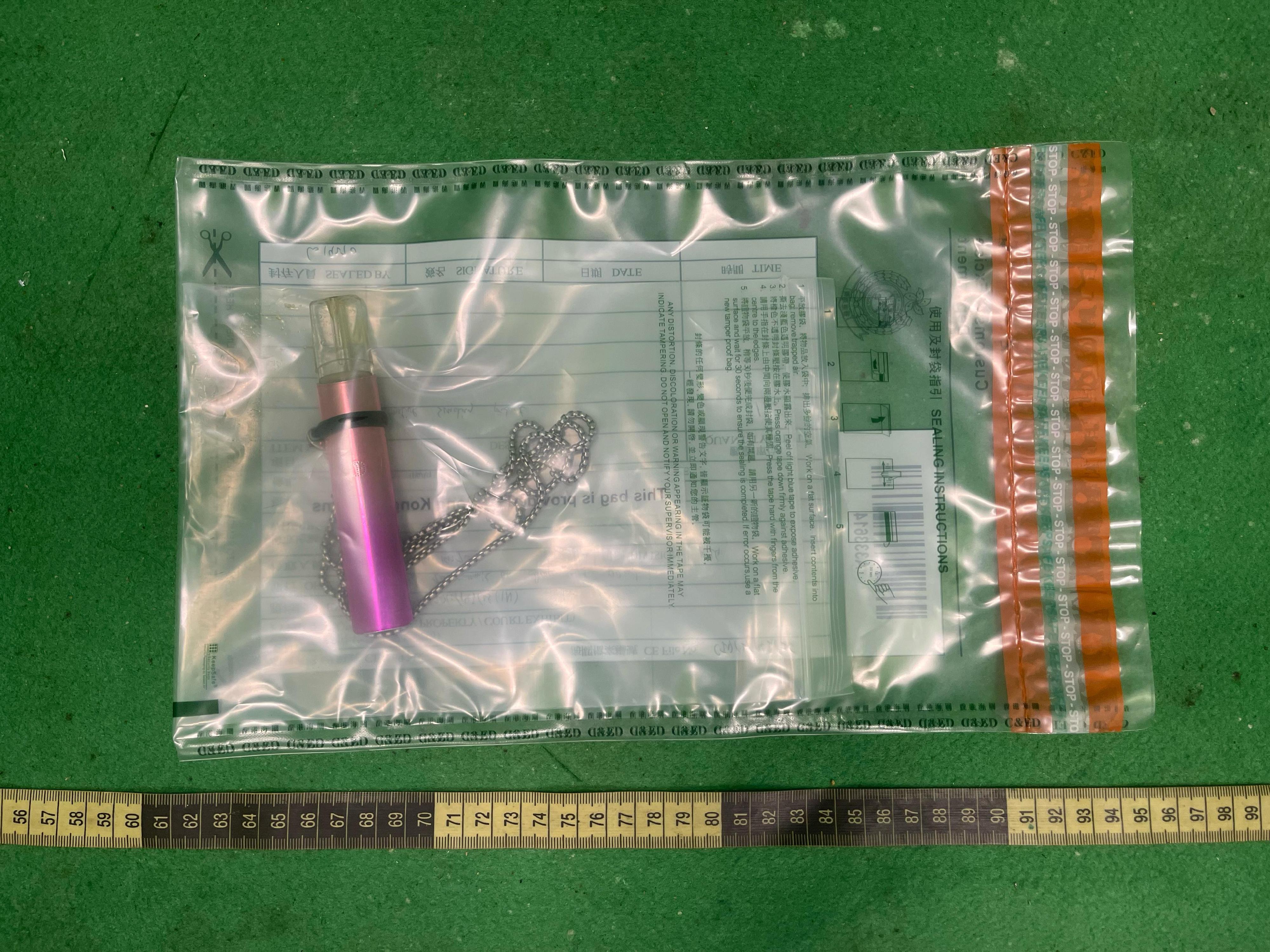 一名二十一岁的女旅客和一名十九岁的男旅客今日从马来西亚吉隆坡飞抵本港。海关人员清关时,在该女旅客的寄舱行李内发现该批怀疑海洛英,以及在其随身袋中检获一支怀疑另类吸烟产品,遂把二人拘捕。