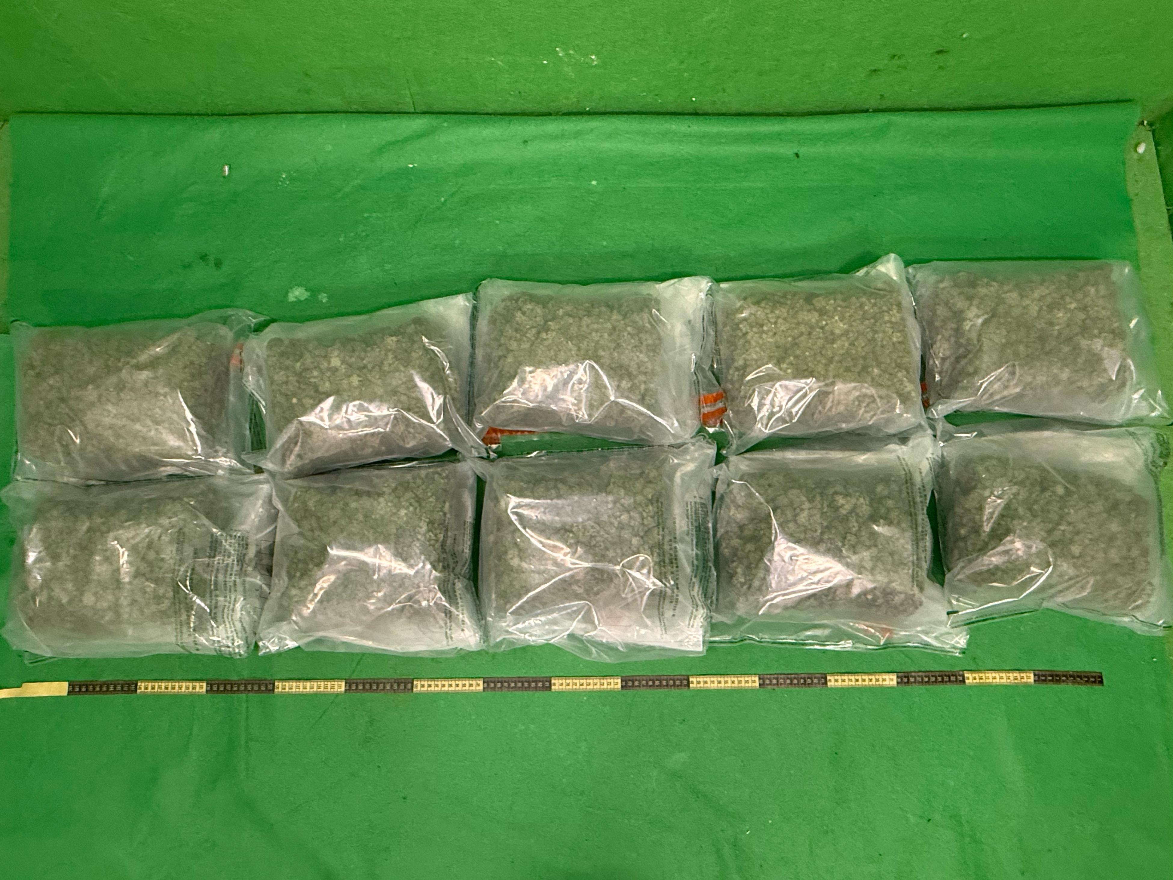 一名四十七岁的男旅客昨日从泰国曼谷飞抵本港。海关人员清关时,在其寄舱行李内发现该批怀疑大麻花,遂把他拘捕。