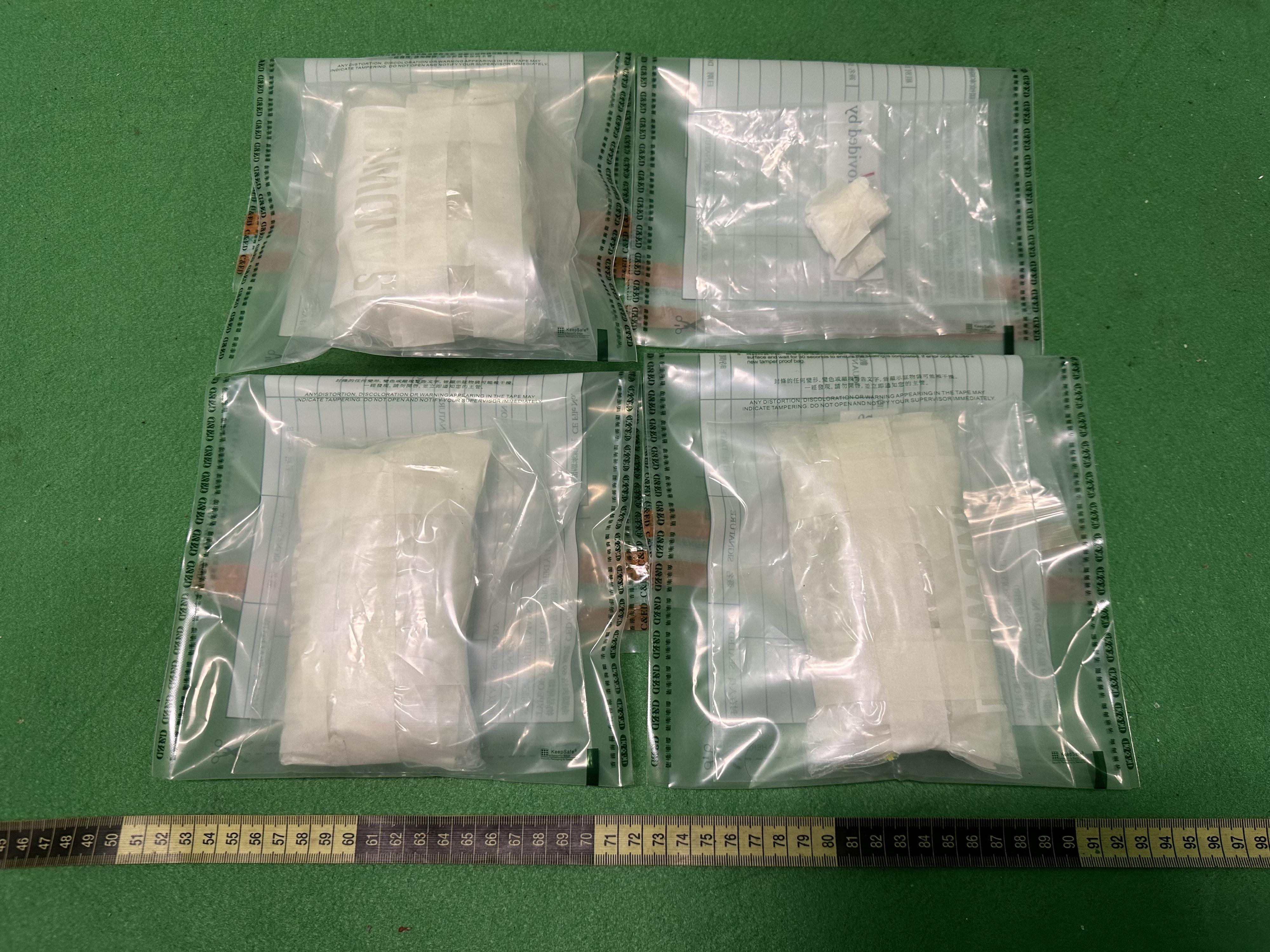香港海关今日(四月一日)在香港国际机场侦破一宗贩毒案件,检获约六百克怀疑冰毒,估计市值约三十万元。