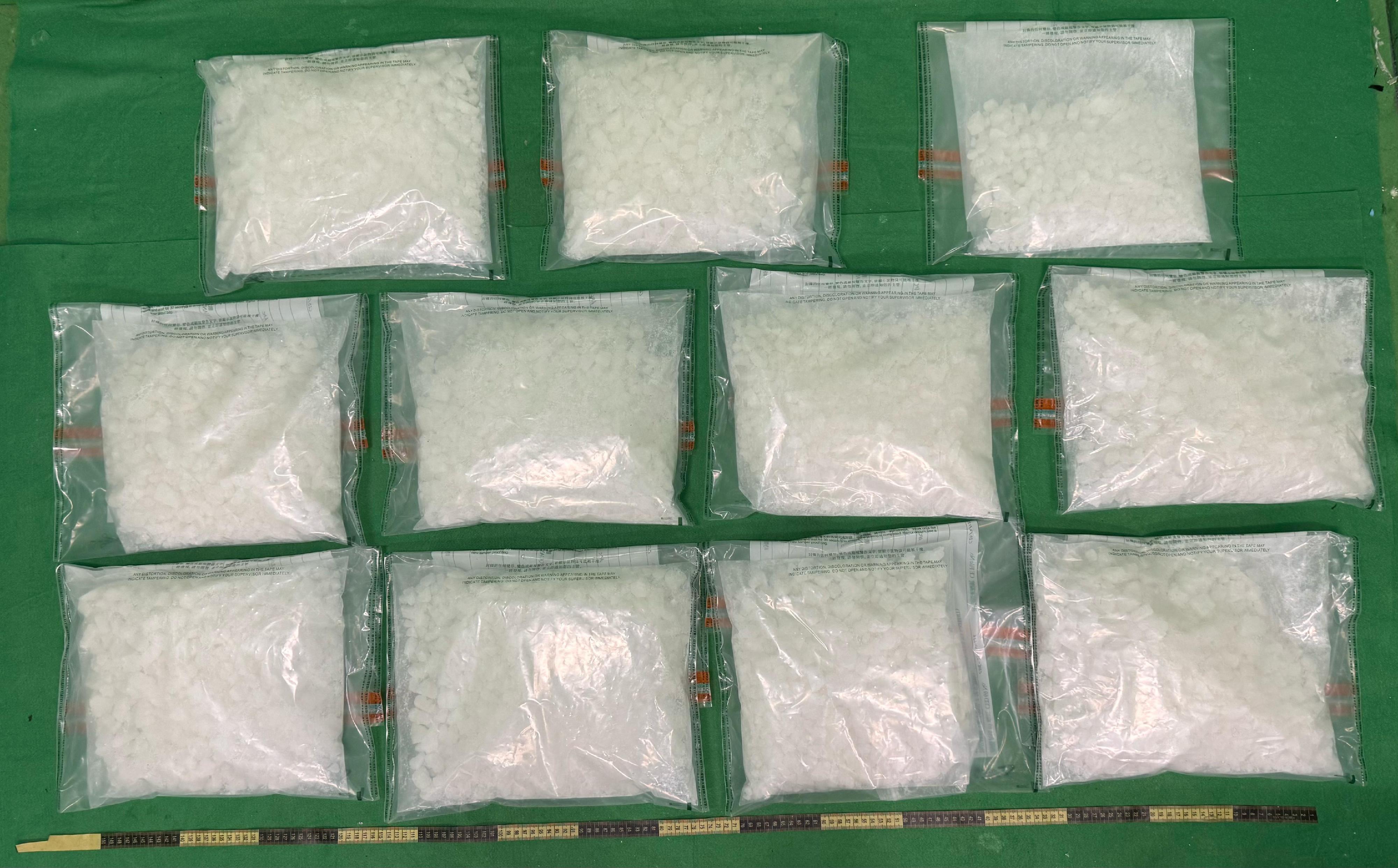 香港海关今日(四月十五日)在香港国际机场侦破一宗行李藏毒的贩毒案件,检获约二十六公斤、估计市值约一千三百万元的怀疑氯胺酮。