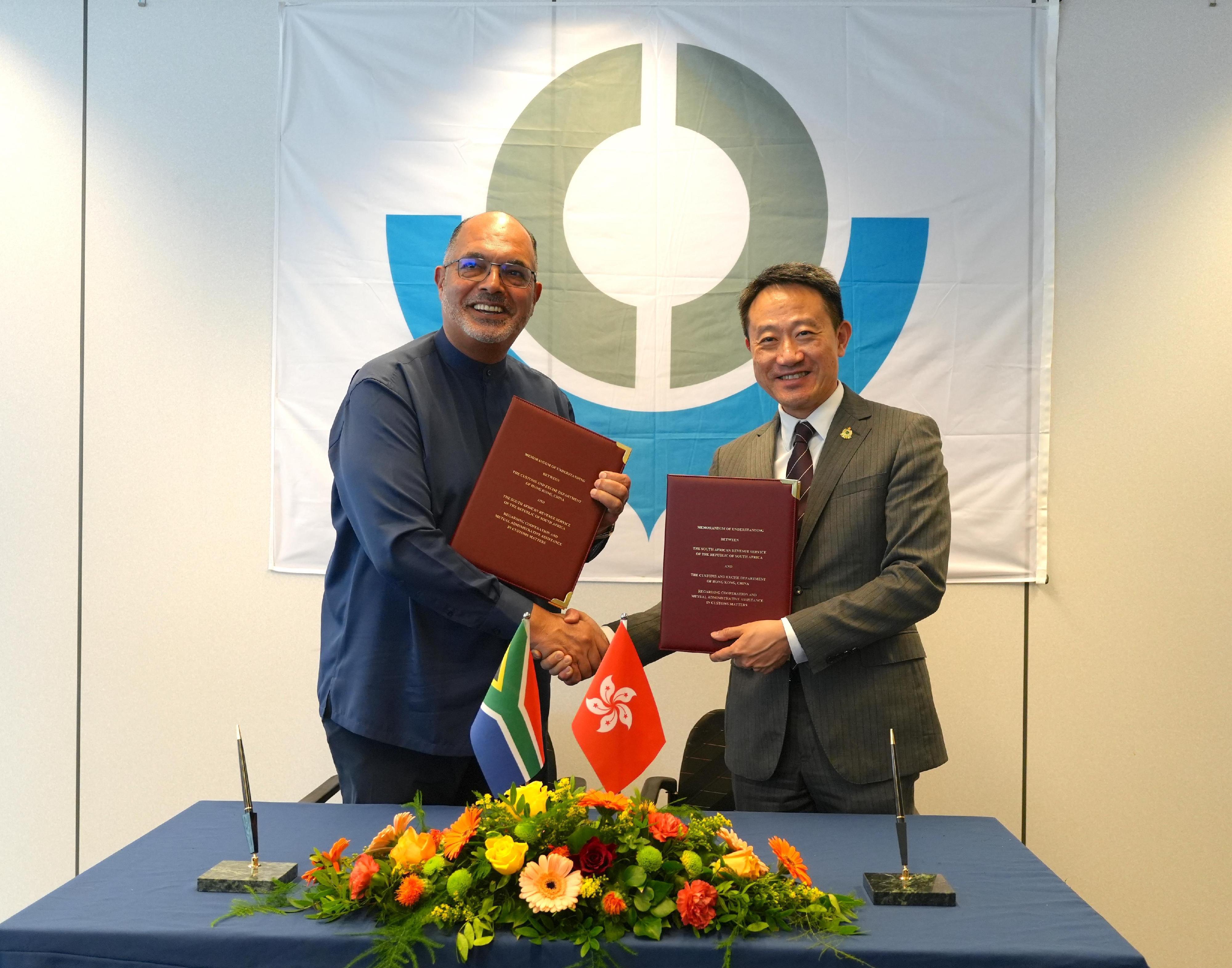 于六月二十七日,陈子达亦与南非税务署署长Edward Kieswetter签订《海关合作及行政互助备忘录》,加强资讯交流以打击跨境犯罪活动,并促进贸易便利化。目前,香港海关已经与国家海关总署、澳门海关及三十二个海外海关组织合共签订三十四个类似的合作安排。