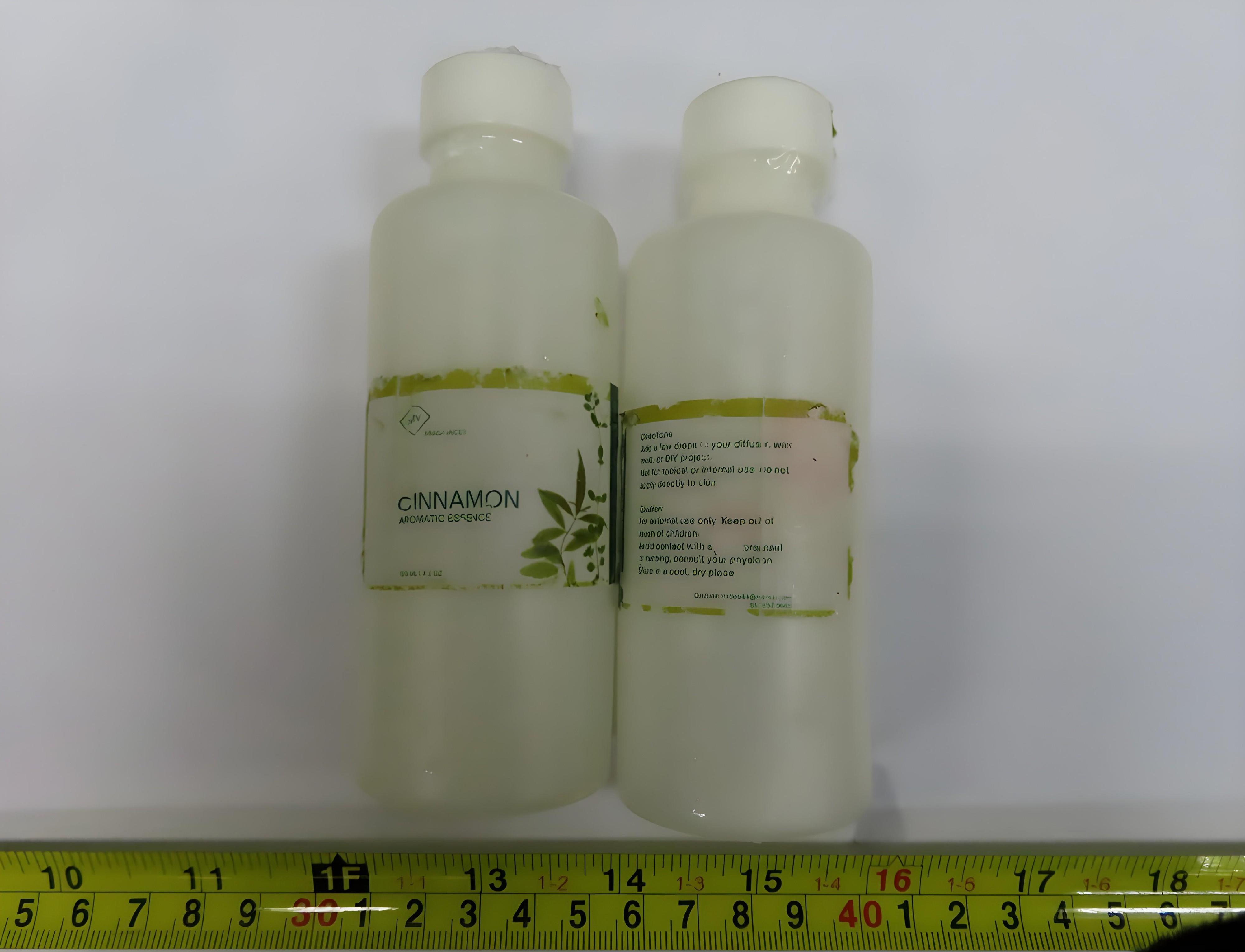 海关人员昨日(七月二十五日)及今日(七月二十六日)在香港国际机场检查三个由墨西哥经香港转口到台湾并报称载有水溶性精油的空运包裹,经检验后,海关人员在二百五十六个精油胶樽内发现藏有共约二十八公斤怀疑液态冰毒。