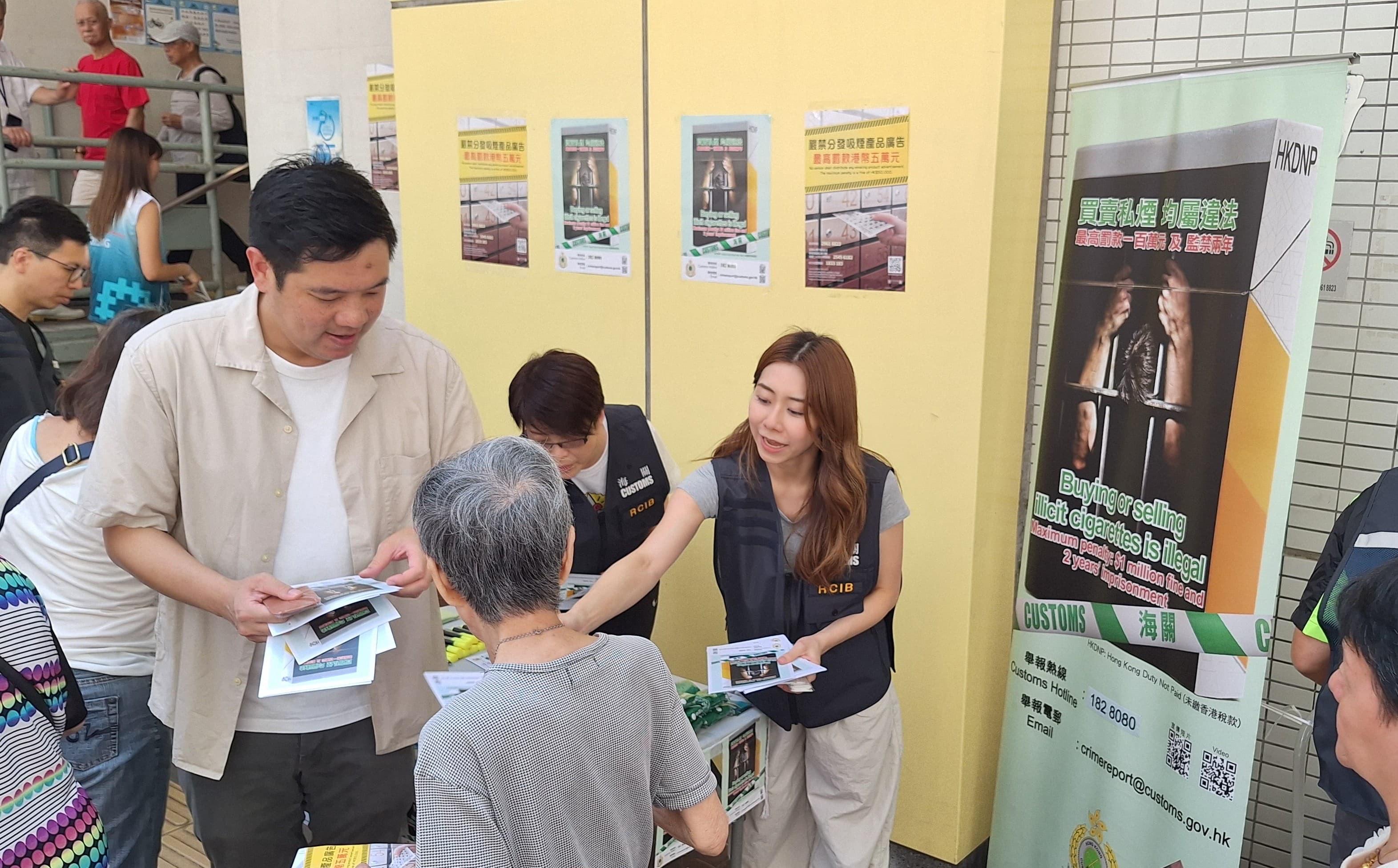 海关人员除于屋邨范围巡查,亦向屋邨保安员、居民及商户宣传政府提高私烟相关罪行罚则的修例建议,并鼓励他们向海关举报怀疑私烟活动。