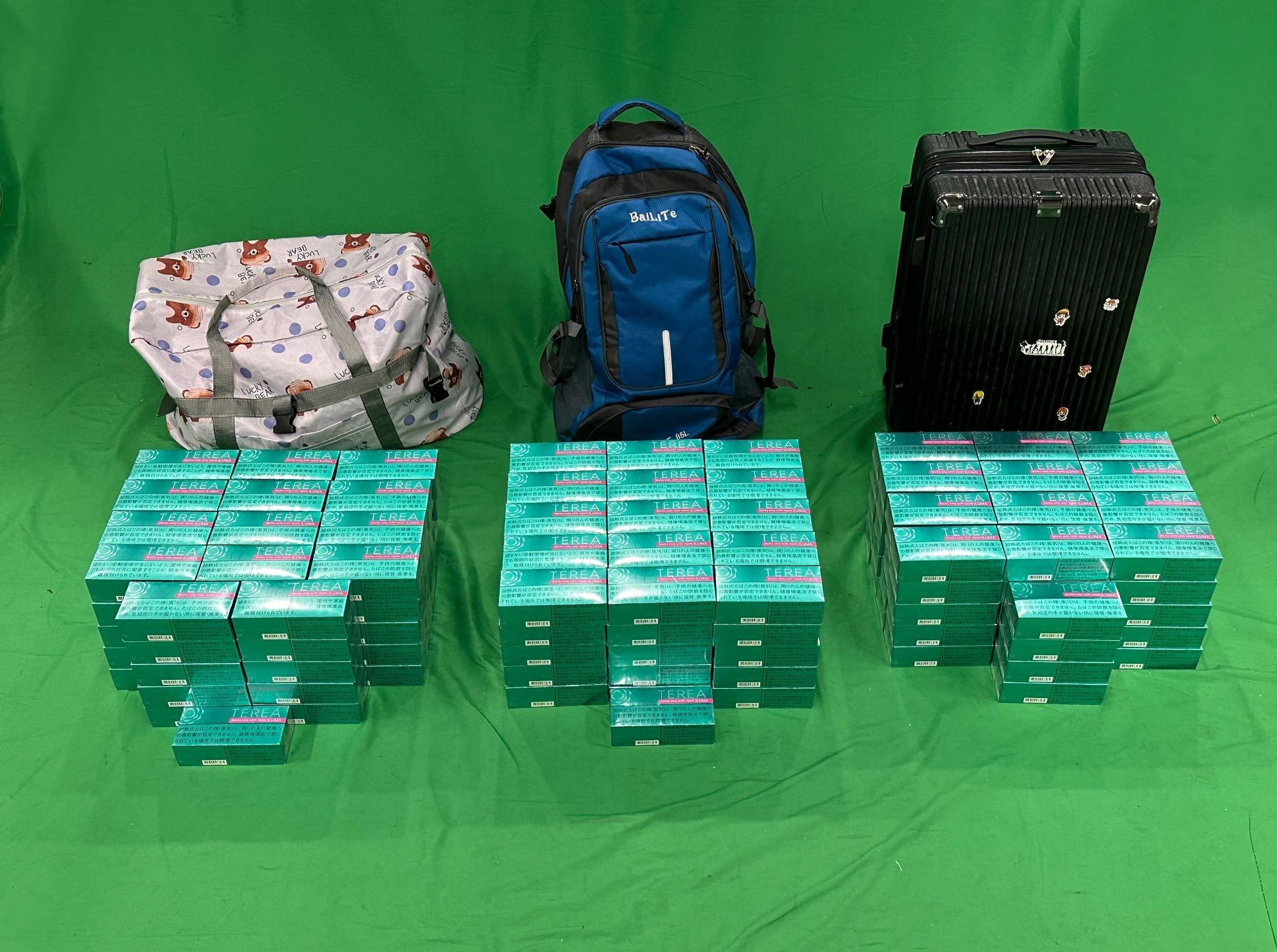 海关人员于七月七日在香港国际机场截查一名二十一岁抵港男旅客,并在其携带的个人行李内检获约四万二千二百件另类吸烟产品,估计市值共约十二万六千六百元。该名抵港旅客随即被捕。