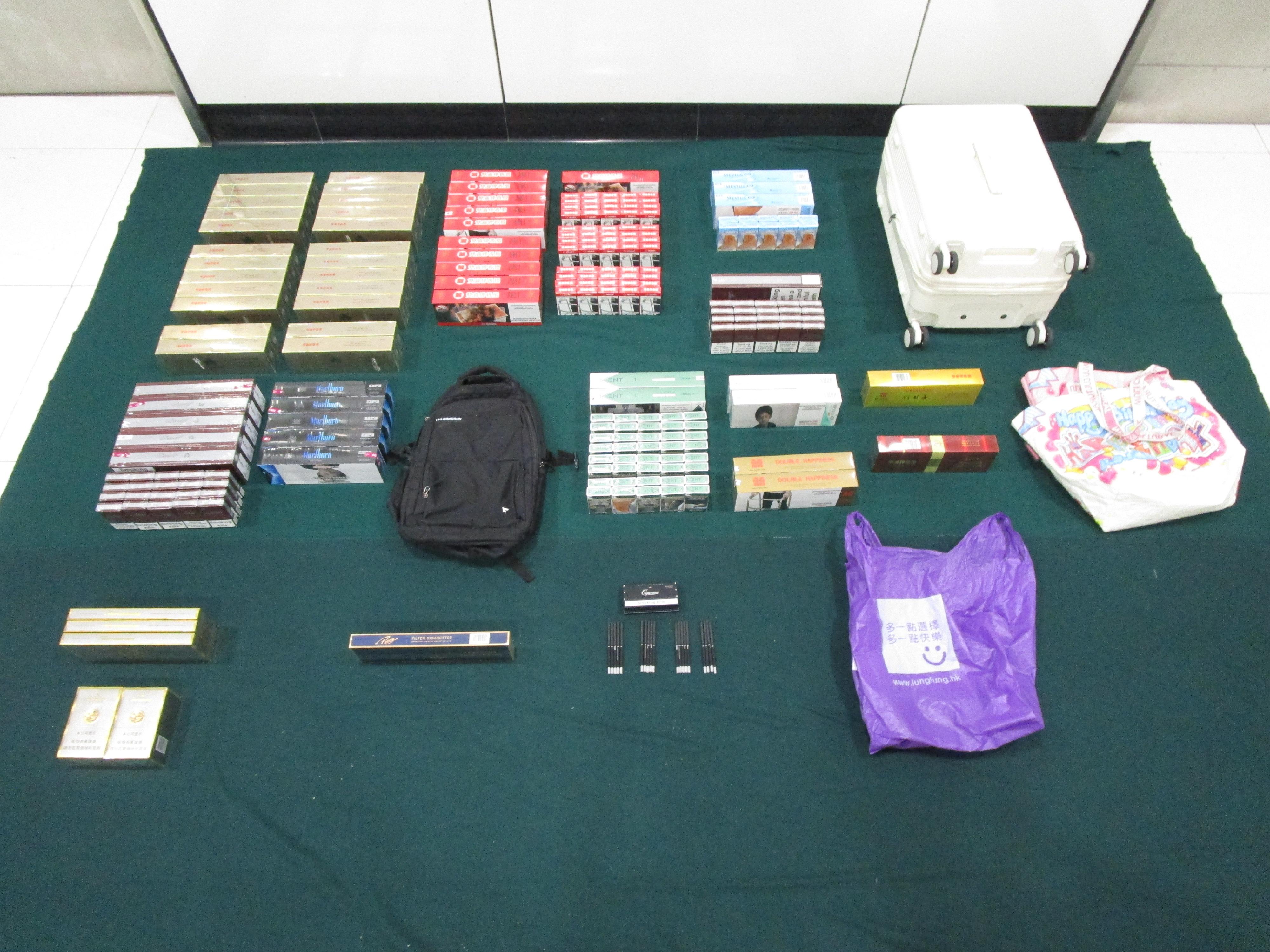 海关人员于昨日(九月五日)在落马洲支线管制站截查该名五十九岁抵港女旅客,在其携带的行李箱、背包及购物袋内检获一万五千六百一十九支未完税香烟,估计市值约六万四千元,应课税值约五万一千六百元。该名旅客随即被捕。