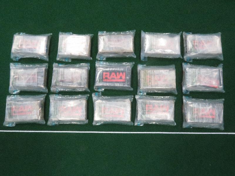 香港海关三月十三日在葵涌海关大楼验货场的一个转口货柜内检获约十六点五公斤怀疑可卡因,估计市值约一千七百七十万元。