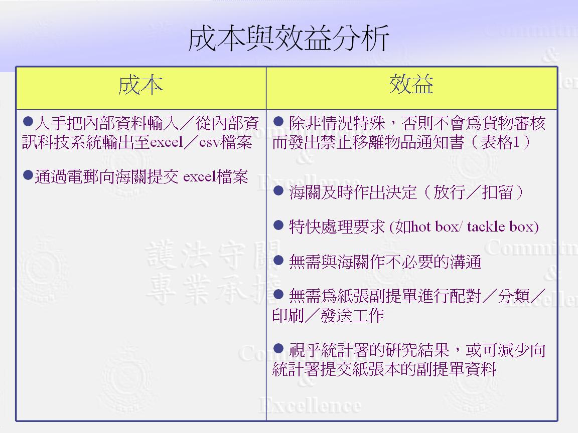 | 海关: | 除特殊情况外,我们不会发出“禁止移离物品通知书”(即表格1)以供核实收货人纪录,例如,在船只预算抵达时间前尚未提交副提单。在正常情况下,在船只预算抵达时间前只会发出“移离至指明处所以接受查验的通知书”(即表格2),以扣留付运货品查验。 |