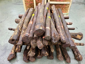 香港海關昨日(一月六日)和今日(一月七日)在香港國際機場共檢獲約四千一百二十公斤懷疑受管制紫檀木材,估計市值約二千零七十萬元。
