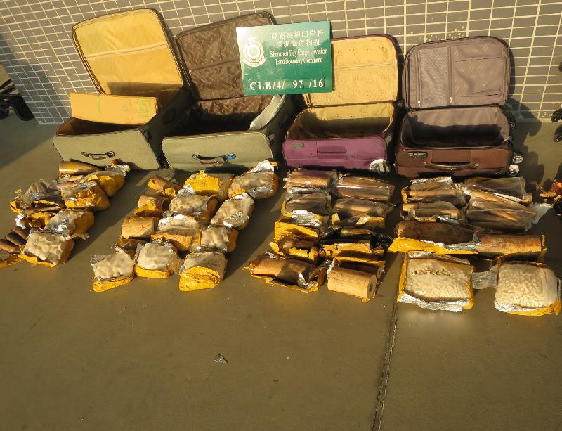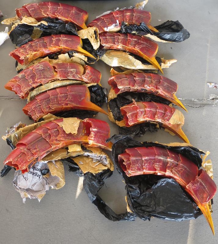 海關人員昨日下午在深圳灣管制站搜查一輛出境七人私家車時,於一名男乘客的行李內檢獲該批懷疑瀕危物種。該名男乘客五十歲,因涉嫌觸犯《進出口條例》及《保護瀕危動植物物種條例》被捕。案件仍在調查中。