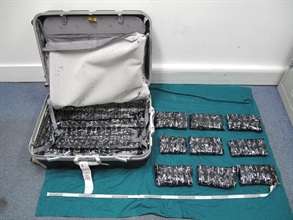 海關人員昨天下午截查一名從巴西聖保羅抵港,並準備乘船過境到珠海男子,在其行李箱夾層中搜出共重約六千三百克的可卡因。