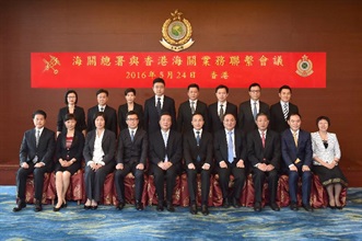 香港海關與內地海關總署今日(五月二十四日)在香港舉行二○一六年海關總署與香港海關業務聯繫會議。香港海關代表團由香港海關關長鄧忍光率領,海關總署代表團則由海關總署署長于廣洲率領。