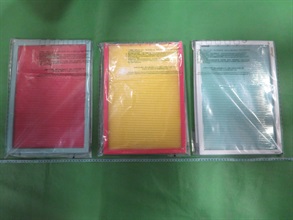海關人員昨日在深圳灣管制站檢查一件從馬來西亞經深圳到港,報稱載有過膠機的快遞包裹。經檢查後,於三塊膠板內發現該批懷疑海洛英。