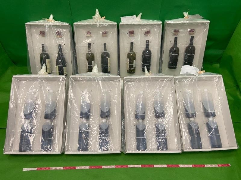 一名女旅客昨日從巴西聖保羅經卡塔爾多哈飛抵本港。海關人員替她進行清關時,在其寄倉行李箱內發現八個載有懷疑液態可卡因的酒瓶,遂拘捕該名二十八歲女子。