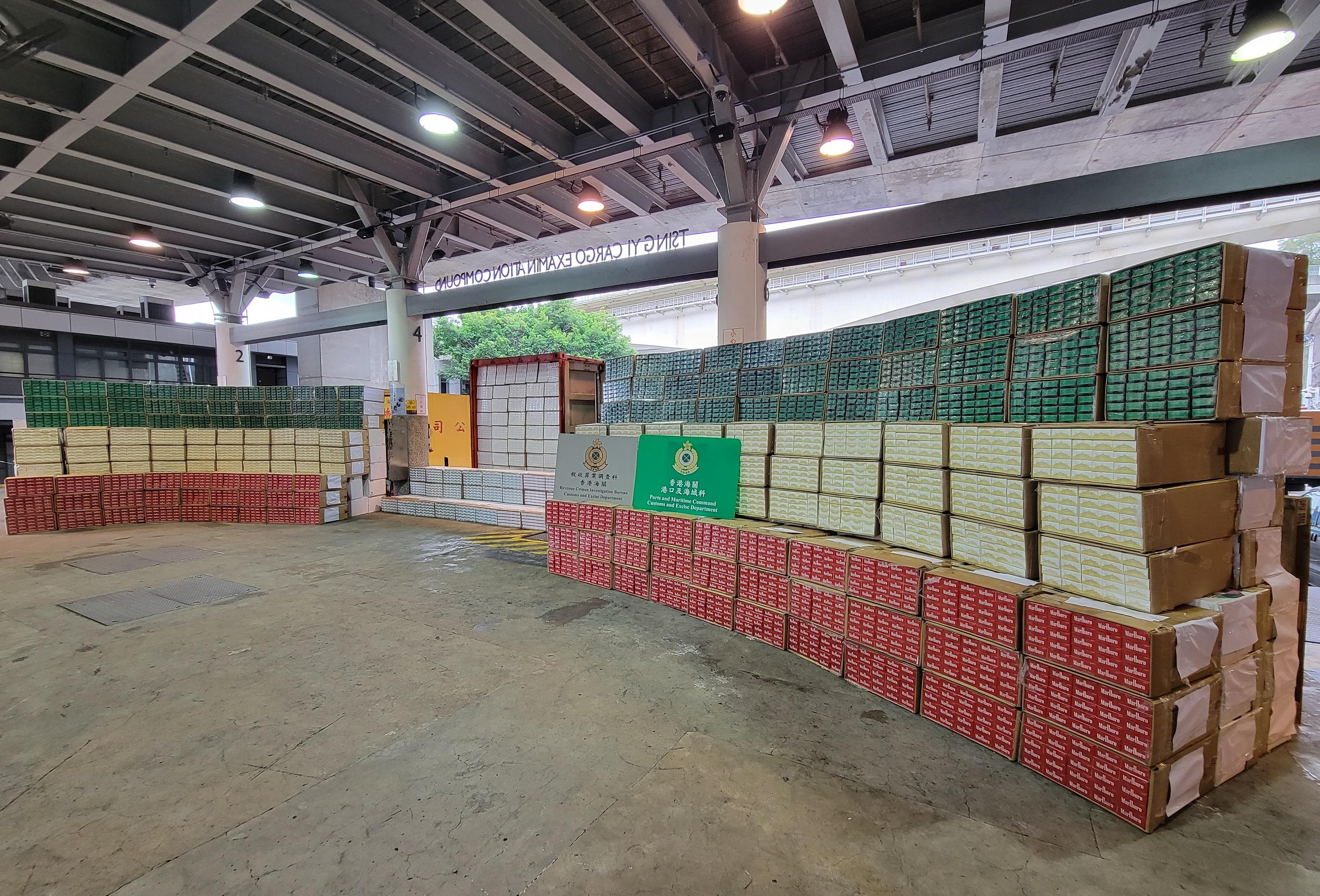 香港海關於五月四日及五日兩宗案件中,分別在元朗及葵涌海關大樓驗貨場檢獲共約二千七百萬支懷疑私煙,估計市值約七千四百萬元,應課稅值約五千一百萬元。