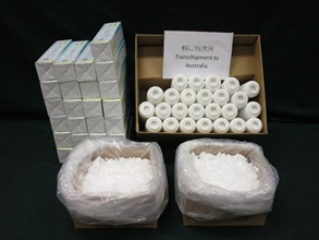 香港海關昨日(十一月八日)和今日(十一月九日)在香港國際機場破獲兩宗經貨運快遞渠道的跨境販毒案,檢獲共約二十公斤懷疑冰毒,估計市值約一千二百萬元。