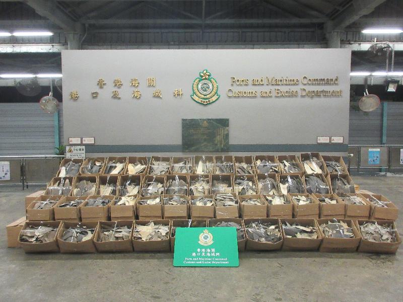 香港海關昨日(十一月九日)在葵涌海關大樓驗貨場一個貨櫃內檢獲約一點九公噸懷疑受管制屬瀕危物種的乾魚翅,估計市值約一百四十五萬元。