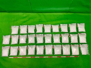 香港海關十一月二十日在香港國際機場檢獲約二十公斤懷疑冰毒,估計市值約一千三百萬元。