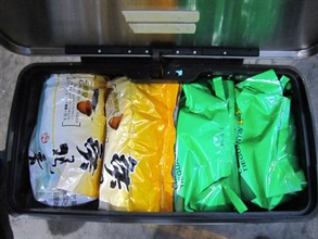 香港海關昨日(三月二十一日)在香港國際機場超級一號貨站檢查一批報稱不銹鋼配件的出口貨物時,搜獲160公斤走私煙草。該批走私煙草市值約60萬元,稅值約33萬元,以茶葉袋包裝,藏於十個不銹鋼廢紙箱中,準備運往英國。