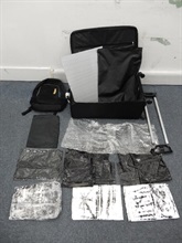 被捕男子昨午從巴西里約熱內盧經杜拜飛抵本港。海關人員在替該名男子清關時,X光檢查其行李發現可疑影像。經詳細檢查下,結果在其行李及行李內一個背囊的夾層內共搜獲三塊懷疑可卡因,重約二點一公斤。