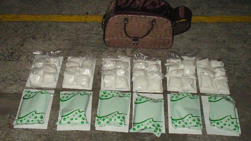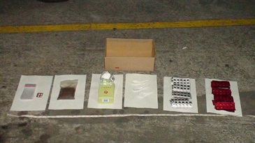 香港海關毒品調查科今日(一月二十六日)在筲箕灣一個停車場內搗破一個流動毒品儲存中心,檢獲12公斤氯胺酮及820粒硝甲西泮,俗稱「5仔」的毒品,市值140萬元,並拘捕一名32歲男子。