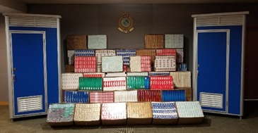 海關人員一月二十三日在落馬洲管制站截查一輛報稱載有流動廁所的入境貨車。經檢查後,海關人員發現七個流動廁所內藏有該批懷疑私煙。