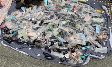 海關在農曆新年前加強打擊侵權活動,掃蕩中區多個售賣懷疑侵權物品的流動小販攤檔,並檢獲約九百件懷疑侵權物品,包括衣服、皮具、手錶、鞋及眼鏡等物品。
