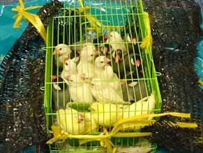 海關人員二月二日下午為一名二十九歲入境男旅客進行清關時,在他所攜帶的兩個膠袋內發現該批活禽鳥。
