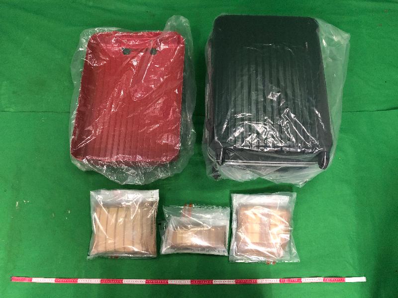 香港海關昨日(二月九日)在香港國際機場檢獲約四點六公斤懷疑可卡因,估計市值約五百五十萬元。
