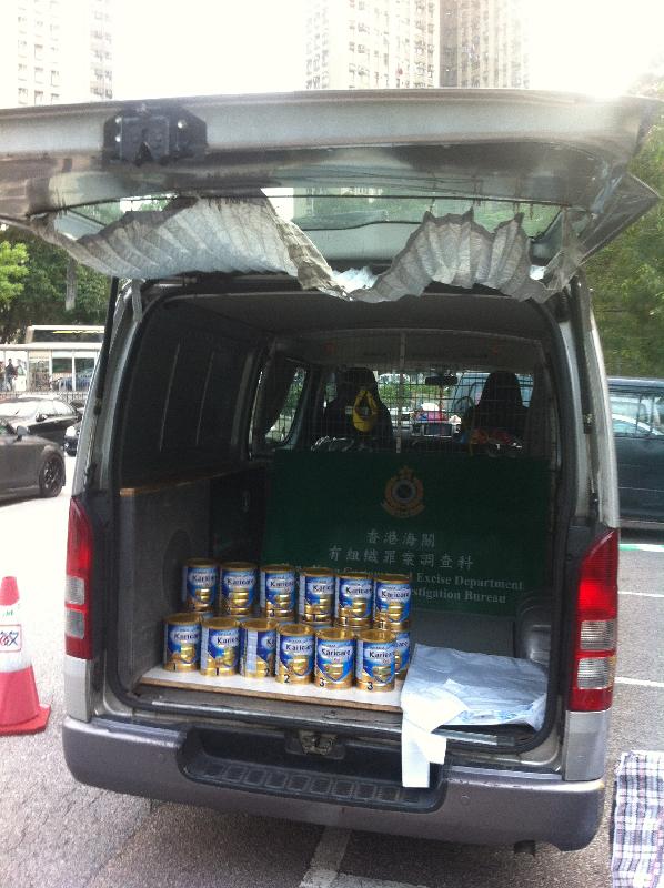 為針對這些有組織的走私活動,海關人員透過嚴密監視和細心策劃,成功拘捕一批操控供應鏈上游的主腦人物及檢獲大量貯存在流動貨倉內的配方粉。在今日(四月六日)上午偵破的一宗案件中,海關發現有走私集團利用輕型貨車作為配方粉的流動倉庫,並把車輛停泊在上水港鐵站旁邊的轉乘停車場,然後由走私頭目多次提貨,再分派給其他在鐵路站外等候的走私客,這些走私客涉嫌一日多次,每次帶兩罐或以上配方粉,或一次超帶配方粉離境。從輕型貨車內、走私頭目及走私客共搜出50罐配方粉,共重45公斤,總值12,500元。