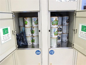 今日海關亦發現走私集團利用北區某商場內之投幣式儲物櫃作為配方粉的暫存倉,然後由走私頭目多次提貨,再分派給其他在鐵路站內等候的職業走私客。海關在行動中除了在邊境管制站截查走私客外,亦拘捕負責分貨的走私頭目,並在有關儲物櫃內起出共48罐配方粉,共重43.2公斤,總值12,000元。