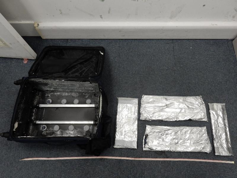 被捕女子昨午從馬來西亞吉隆坡飛抵本港。海關人員在替該名女子清關時,X光檢查其行李發現可疑影像。經詳細檢查後,在行李的夾層內搜獲四塊懷疑可卡因,共重約四公斤。