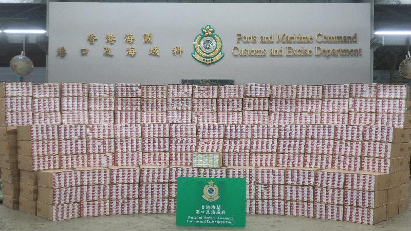 香港海關昨日(十一月一日)在葵涌海關大樓驗貨場檢獲約一千一百六十萬支懷疑私煙,估計市值約三千二百萬元,應課稅值約二千二百萬元。