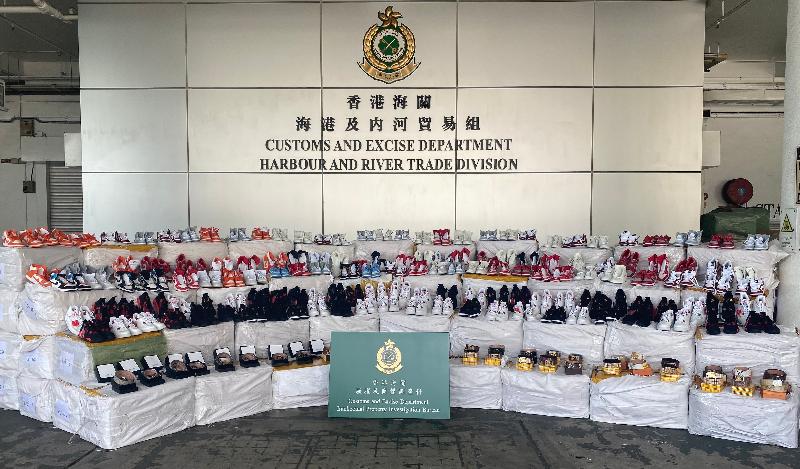 海關人員透過風險評估,於上述兩日抽查三個從廣東南沙抵港的四十呎貨櫃。經檢查後,海關人員在貨櫃內檢獲該批懷疑冒牌及走私貨物,包括運動鞋和皮帶。