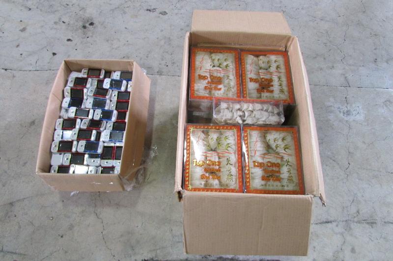 香港海關昨日(七月八日)進行海上反走私行動,在大嶼山破獲一宗走私案件,檢獲131公斤懷疑沉香木、220公斤懷疑未經加工的水晶原石、九公斤燕窩及8,500部舊手提電話和零件,總值約74萬元。