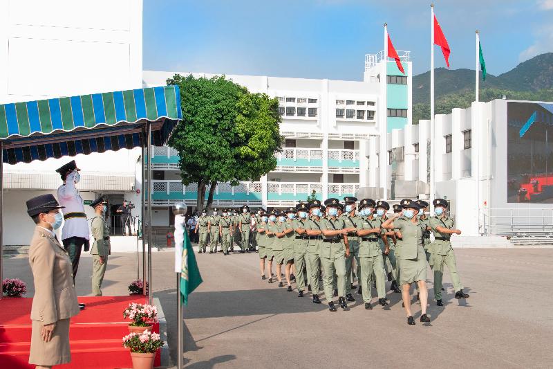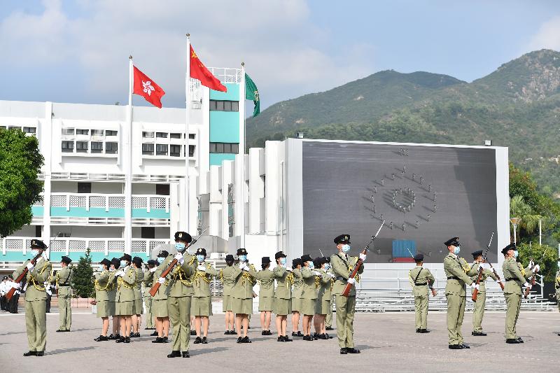 香港海關今日(十月十九日)於海關學院以全中式升旗及步操舉行第129至132屆督察暨第475至478屆關員基本訓練課程學員結業會操,海關關長鄧以海擔任檢閱官。