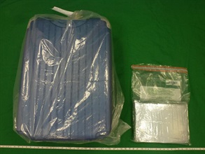 一名男旅客昨日下午從巴西聖保羅經埃塞俄比亞亞的斯亞貝巴飛抵本港。海關人員替該名男子進行清關,在其寄艙行李的夾層內檢獲一塊懷疑可卡因,重約四公斤。該名男子因此被捕。