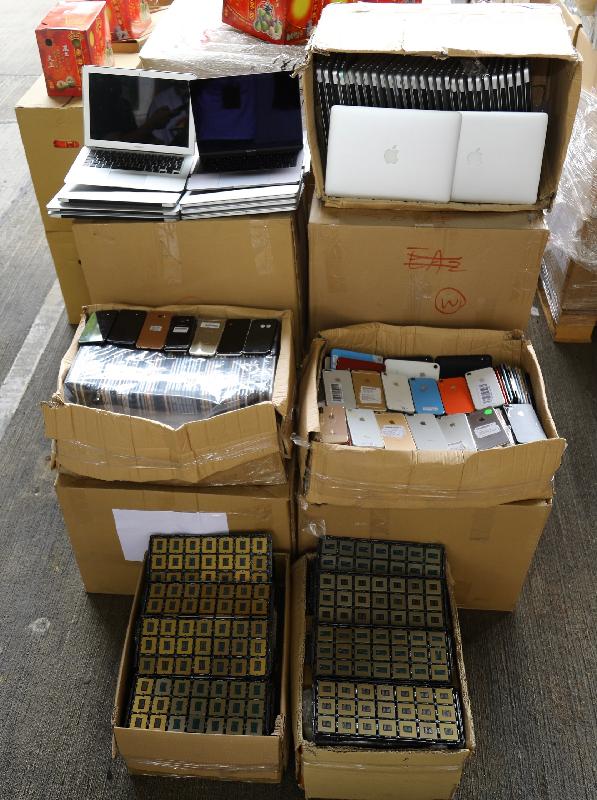 海關人員於現場檢獲一輛懷疑涉案貨車。跟進調查後,海關人員突擊搜查附近一個倉庫,再檢獲三輛懷疑涉案貨車及大批懷疑走私貨物,包括名牌手袋、名貴手表、貴價食材和高度瀕危物種。