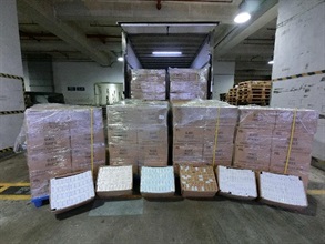 香港海關昨日(二月二十三日)在葵涌檢獲約九十萬支懷疑私煙,估計市值約二百四十萬元,應課稅值約一百七十萬元。