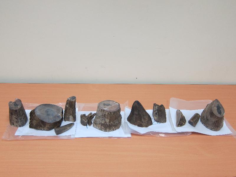 香港海關於三月二十二日在香港國際機場兩件空運快遞郵件中檢獲12件懷疑犀牛角,共重約六點六公斤,估計總值約一百三十萬元。