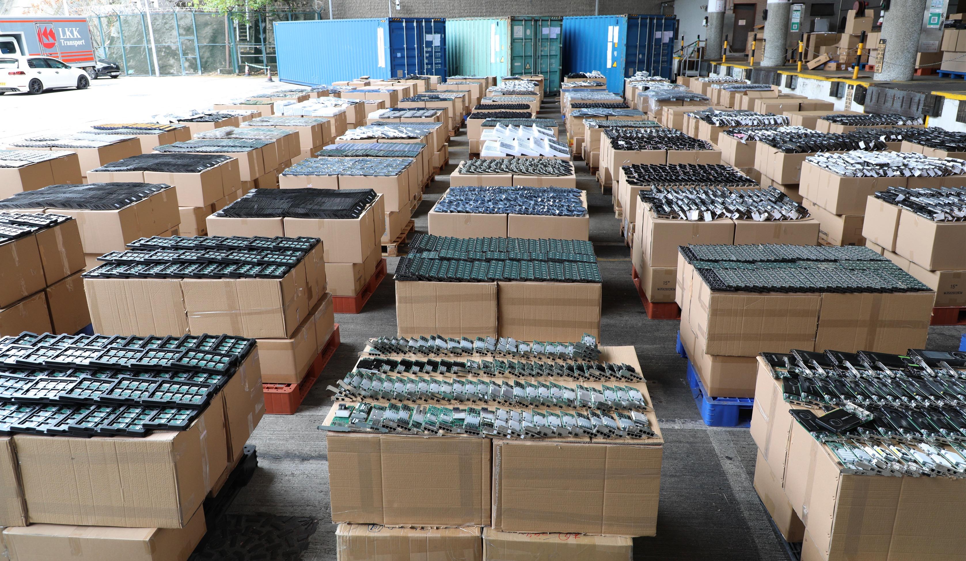 海關人員當晚在香港西面水域進行海上反走私行動,截查一艘正準備駛往內地水域的內河船。經檢查後,於船上其中三個貨櫃內發現該批懷疑走私貨物,包括固態硬碟、集成電路、記憶卡、樂器配件和音響器材。