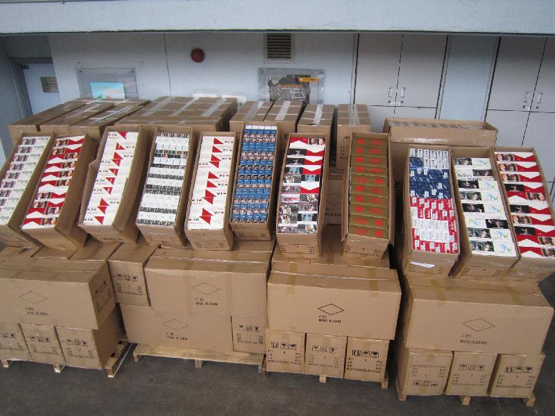 香港海關昨日(五月九日)在文錦渡管制站檢獲約四百萬支懷疑私煙,估計市值約一千一百萬元,應課稅值約八百萬元。