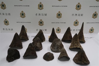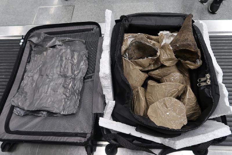 香港海關今日(六月十日)在香港國際機場檢獲約十點五公斤懷疑犀牛角,估計市值約二百一十萬元。