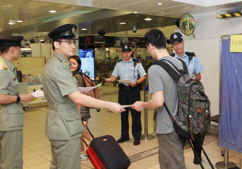 為防止青少年在暑假期間誤墮求職陷阱,被利用進行走私活動,香港海關連同香港警務處今日(七月二十八日)開始在六個陸路邊境管制站派發傳單,以提高市民,尤其是青少年的防範意識。