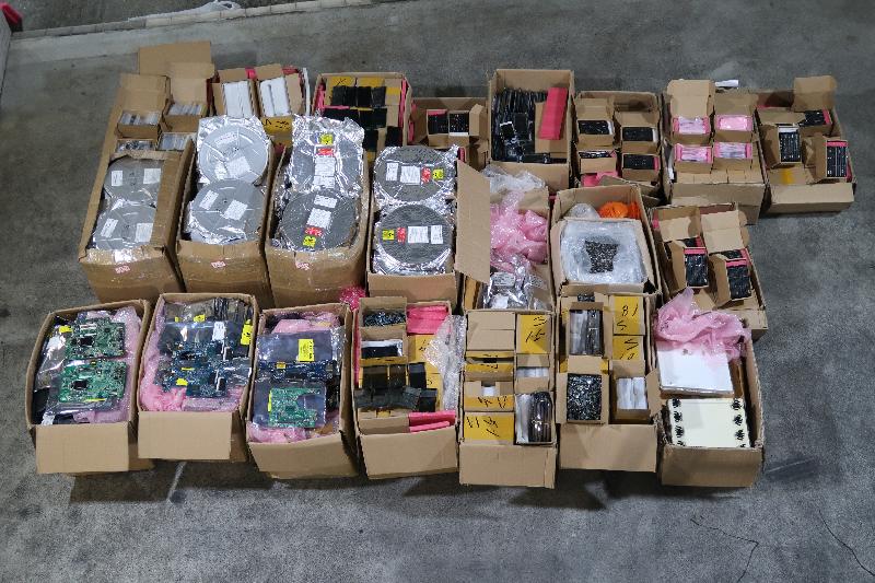 香港海關昨日(八月二日)在落馬洲管制站檢獲一批懷疑走私貨物,包括大量電子零件及塑膠粒,估計市值約二百二十萬元。