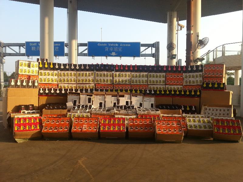 昨日上午,深圳灣管制站海關人員進行反走私行動,截查一輛報稱載有五金、電腦配件及印刷品等物品的入境45呎貨櫃車,經檢查後海關人員發現在貨斗深處收藏了一批未列於艙單的貨物,包括3,674部手提電話及一批電話配件,檢獲物品總值約五百萬元,為海關今年在陸路邊境口岸檢獲最大批的走私手提電話及配件。五十八歲男司機涉嫌觸犯「入口未列艙單貨物」被捕,案件仍在調查中。
