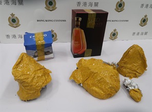 海關人員今日下午在機場截查一名從南非約翰內斯堡飛抵香港的三十七歲男旅客。於替這名旅客進行清關時,在他的寄艙行李內發現兩個紙盒,內藏以錫紙及膠紙包裹約二點六公斤的懷疑犀牛角,於是將他拘捕。