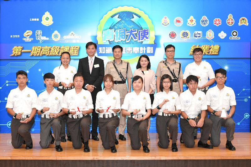 由香港海關舉辦的「青網大使知識產權專章計劃」(專章計劃)第一期高級課程結業禮今日(八月二十五日)於海關訓練學校舉行。該計劃是「青少年打擊網上盜版大使計劃」下的一項活動,三十六名完成課程的青少年打擊網上盜版大使(青網大使)獲頒授「青網大使知識產權專章計劃」高級課程證書,並獲晉升參加最高級別導師課程的資格。